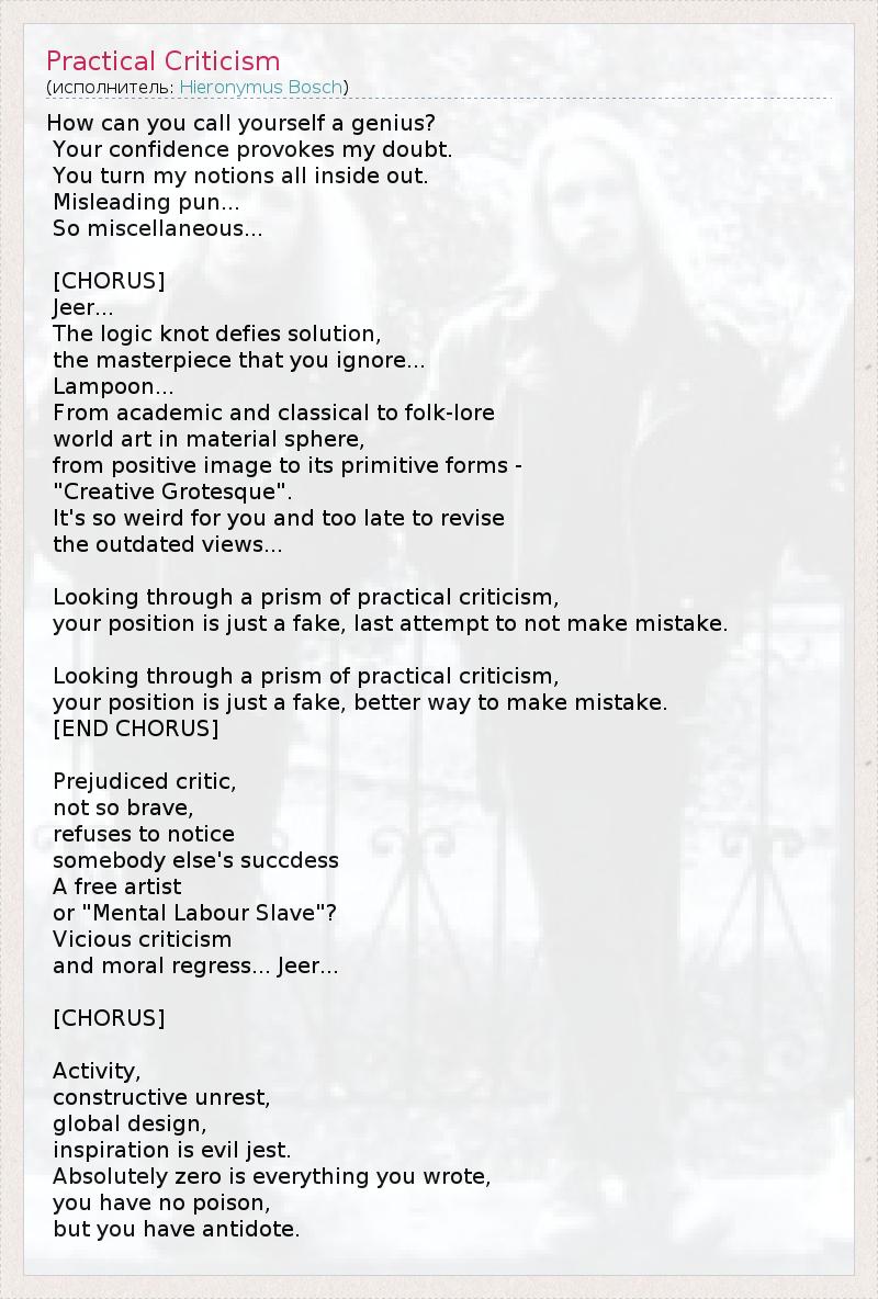 А как ты думаешь, о чем песня "Practical Criticism" ?