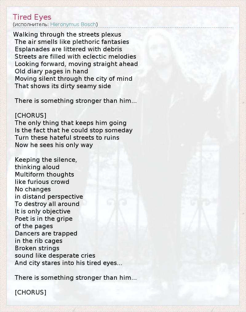 А как ты думаешь, о чем песня "Tired Eyes" ?