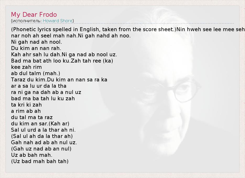 А как ты думаешь, о чем песня "My Dear Frodo" ?