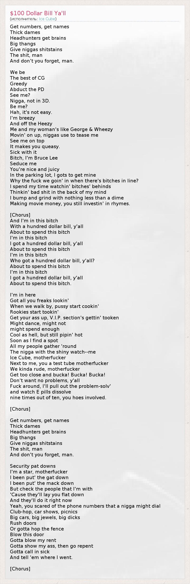 ГлавнаяИсполнителиIce Cube$100 Dollar Bill Ya'll
