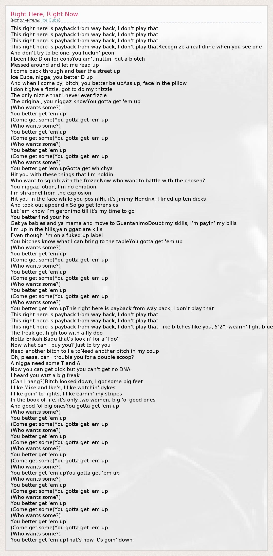 ГлавнаяИсполнителиIce CubeRight Here, Right Now