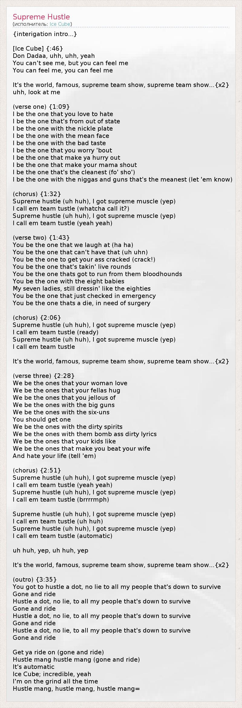 А как ты думаешь, о чем песня "Supreme Hustle" ?