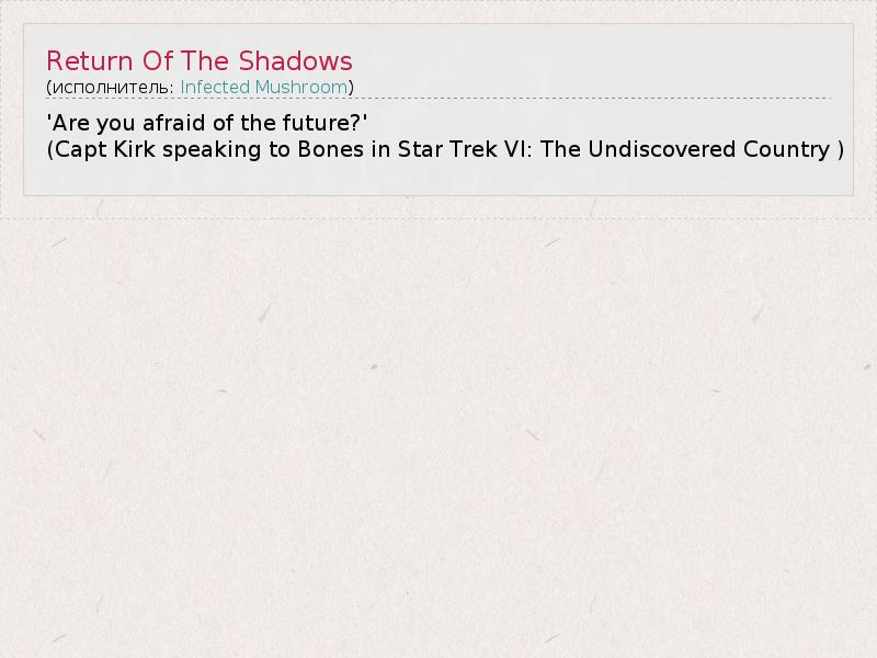 'Are you afraid of the future?' (Capt Kirk speaking to Bones in Star Trek VI: The Undiscovered Country )