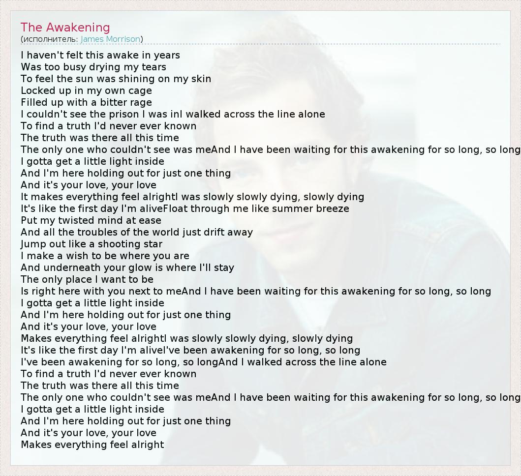 Is right here with you next to meAnd I have been waiting for this awakening for so long, so long