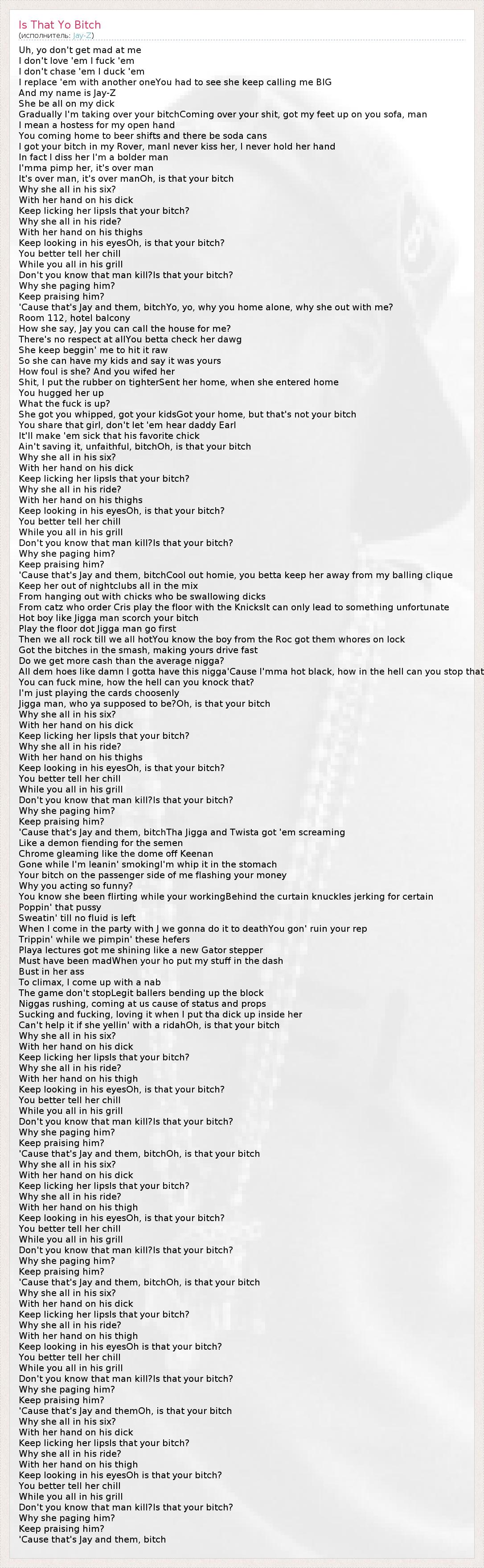 А как ты думаешь, о чем песня "Is That Yo Bitch" ?