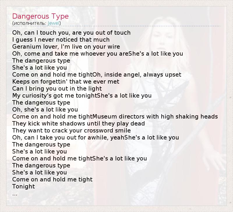 А как ты думаешь, о чем песня "Dangerous Type" ?