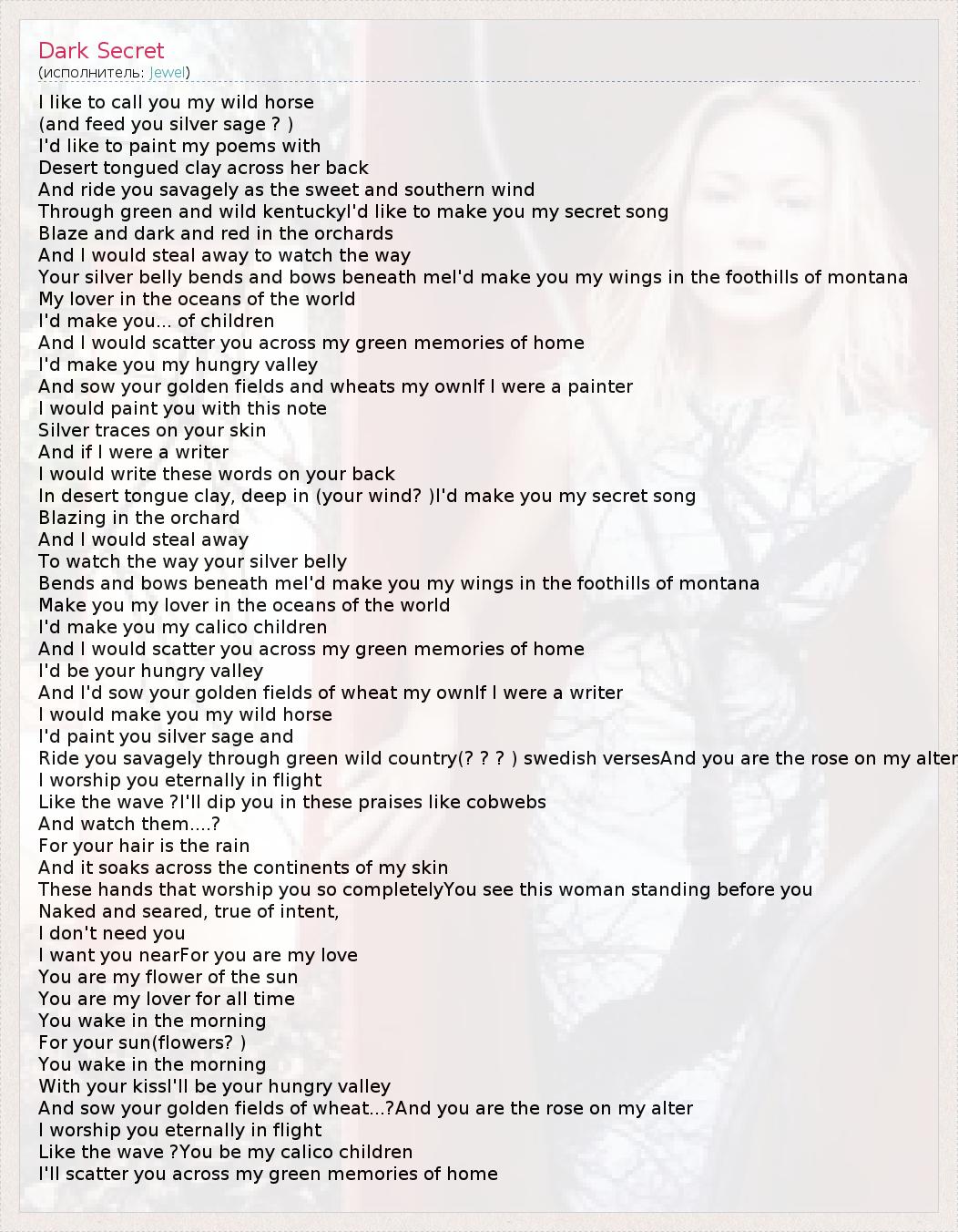 А как ты думаешь, о чем песня "Dark Secret" ?
