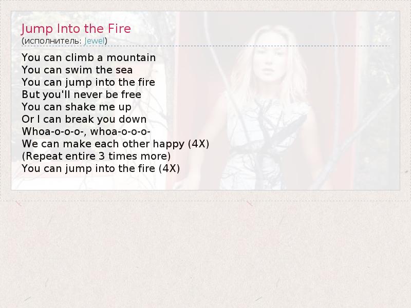 А как ты думаешь, о чем песня "Jump Into the Fire" ?