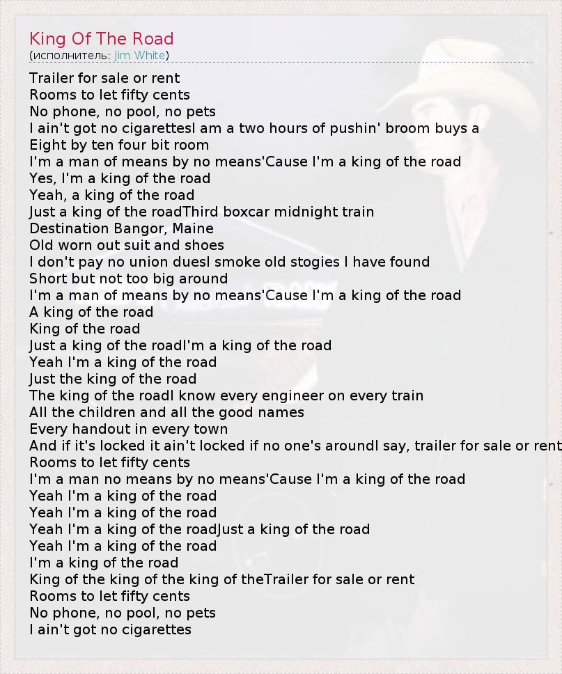 А как ты думаешь, о чем песня "King Of The Road" ?