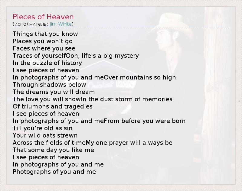 А как ты думаешь, о чем песня "Pieces of Heaven" ?