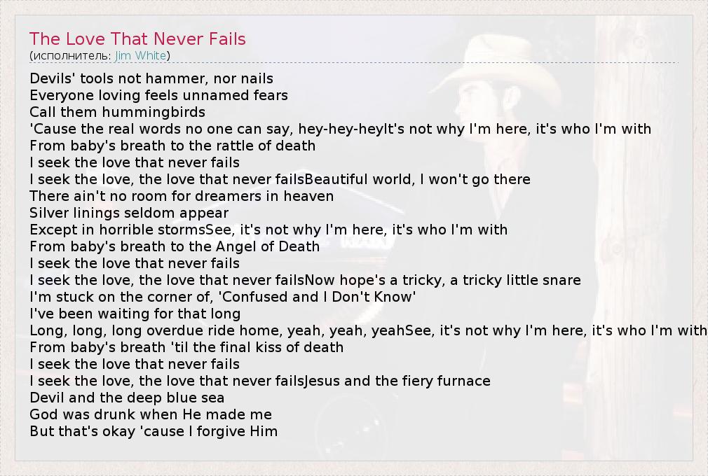 А как ты думаешь, о чем песня "The Love That Never Fails" ?