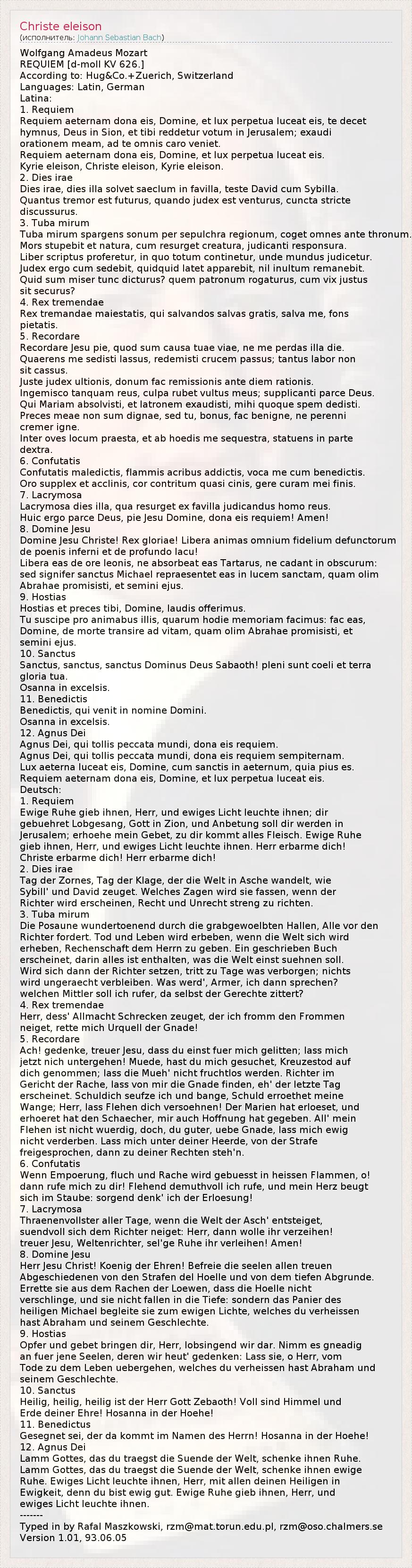 А как ты думаешь, о чем песня "Christe eleison" ?