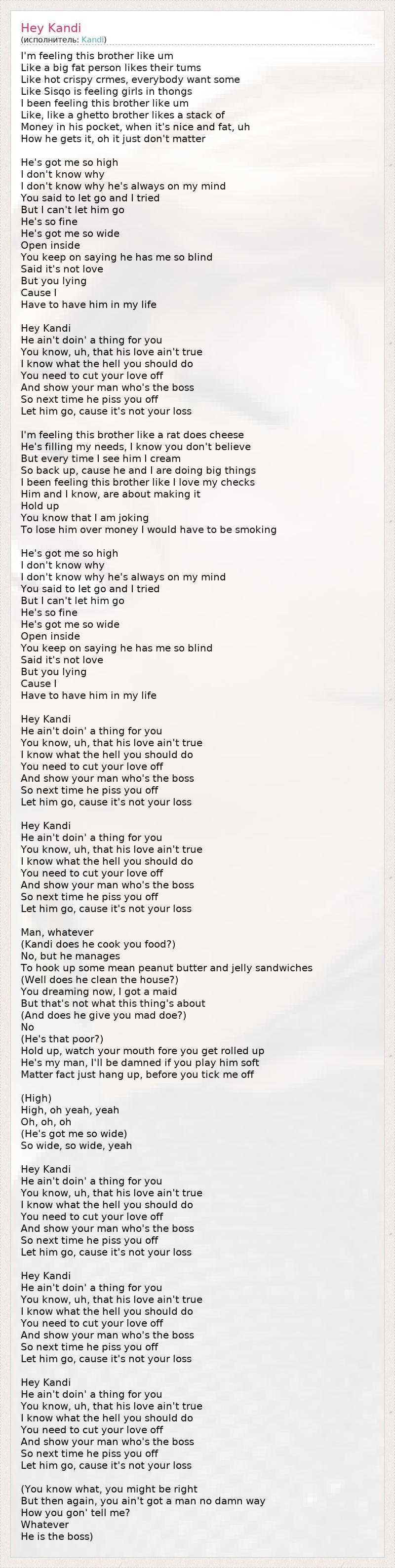 А как ты думаешь, о чем песня "Hey Kandi" ?
