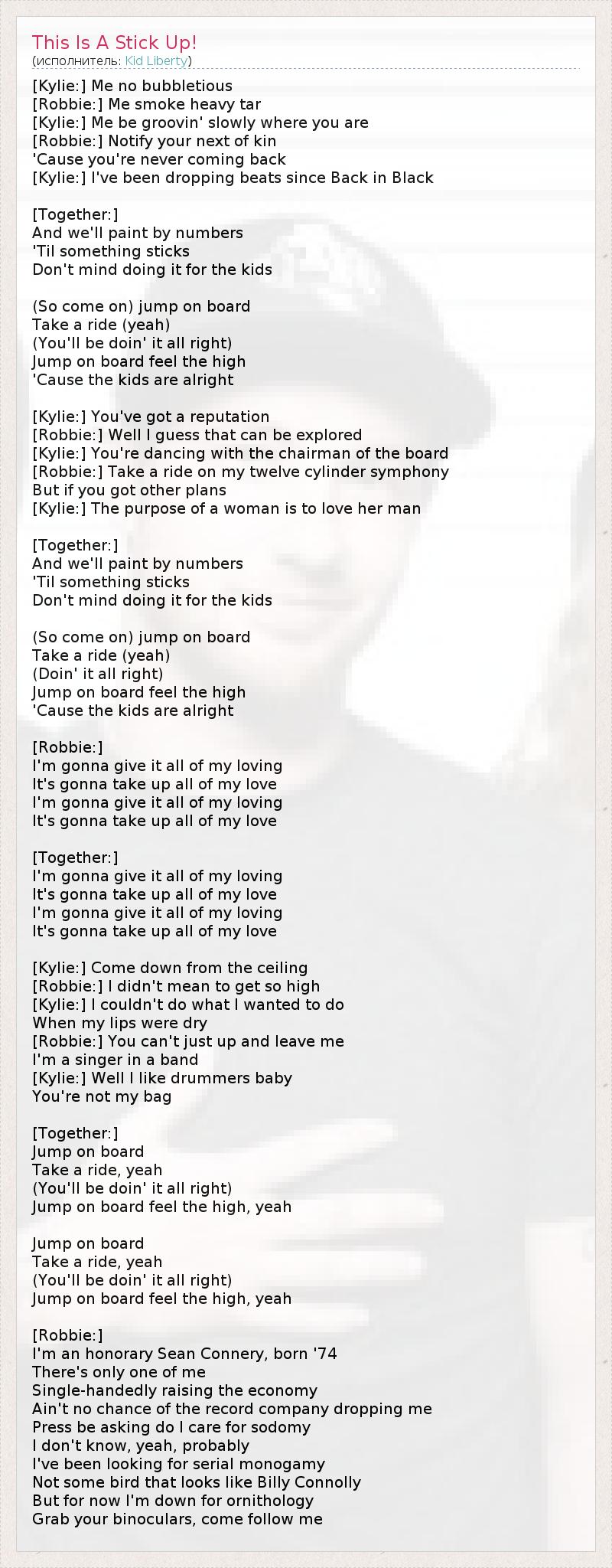 А как ты думаешь, о чем песня "This Is A Stick Up!" ?