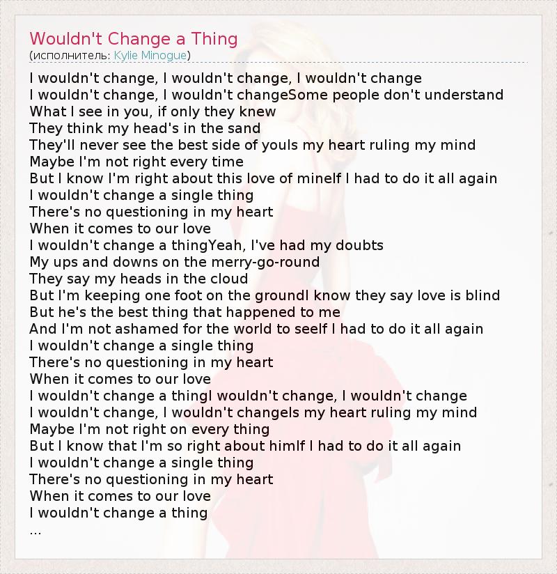 I wouldn't change a thingI wouldn't change, I wouldn't change
