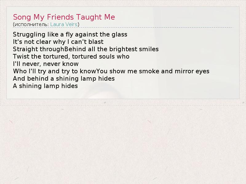 А как ты думаешь, о чем песня "Song My Friends Taught Me" ?
