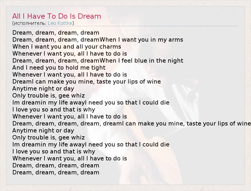 А как ты думаешь, о чем песня "All I Have To Do Is Dream" ?