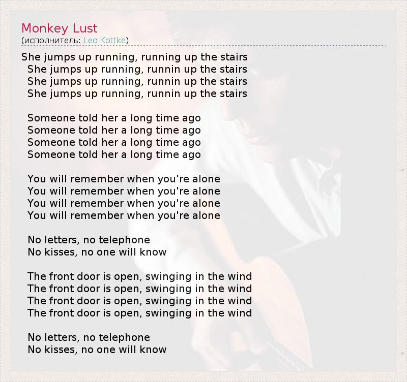 А как ты думаешь, о чем песня "Monkey Lust" ?