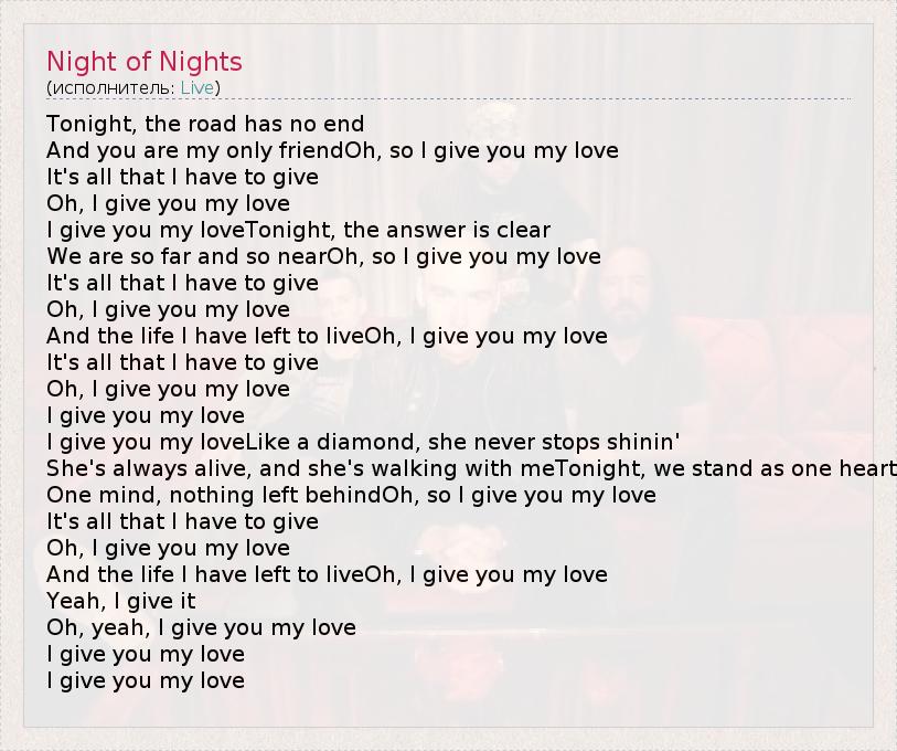 А как ты думаешь, о чем песня "Night of Nights" ?