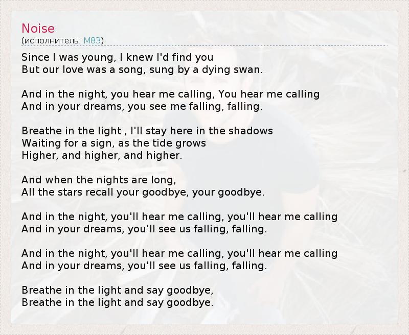 И в ночи, ты слышишь, как я зову, слышишь, как я зову