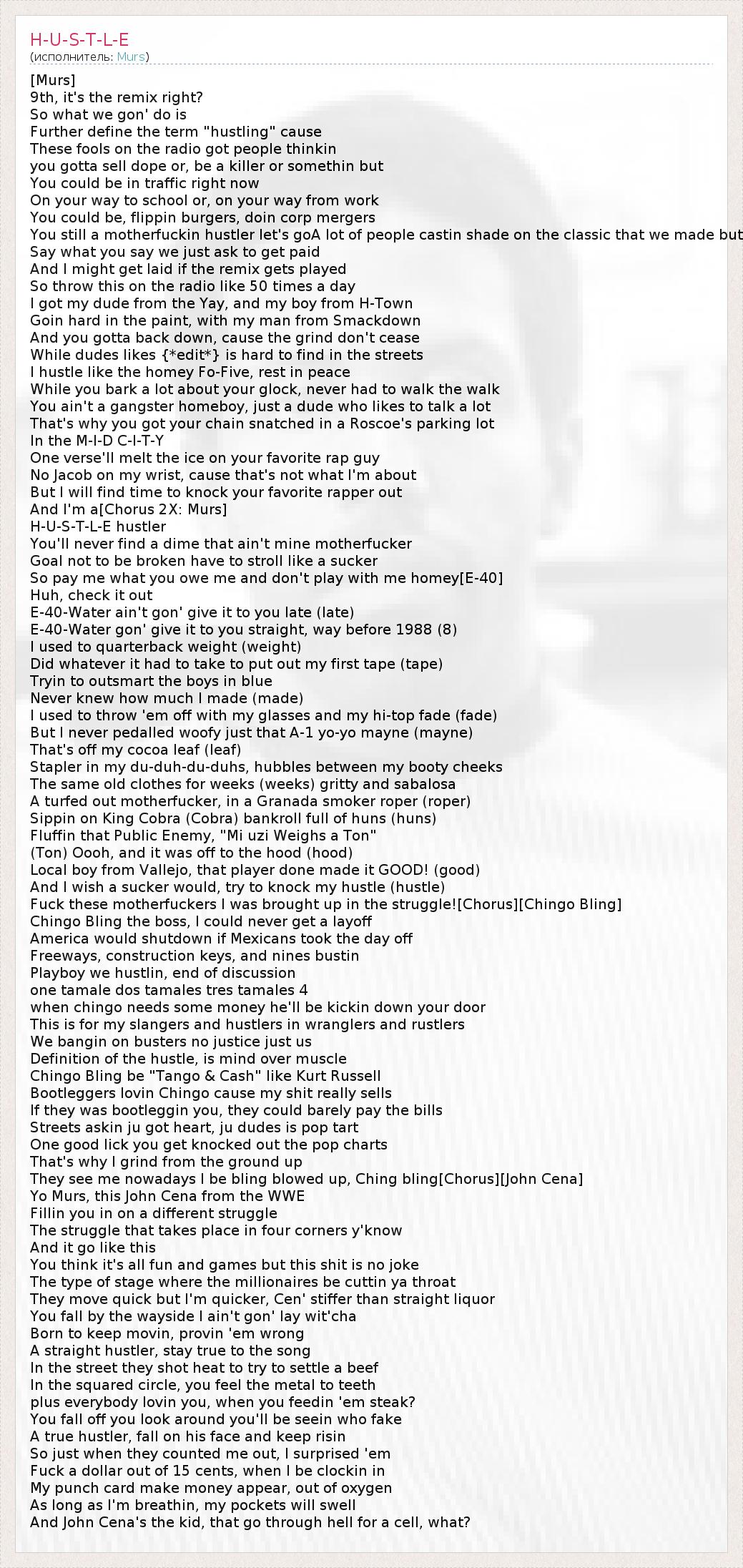 А как ты думаешь, о чем песня "H-U-S-T-L-E" ?