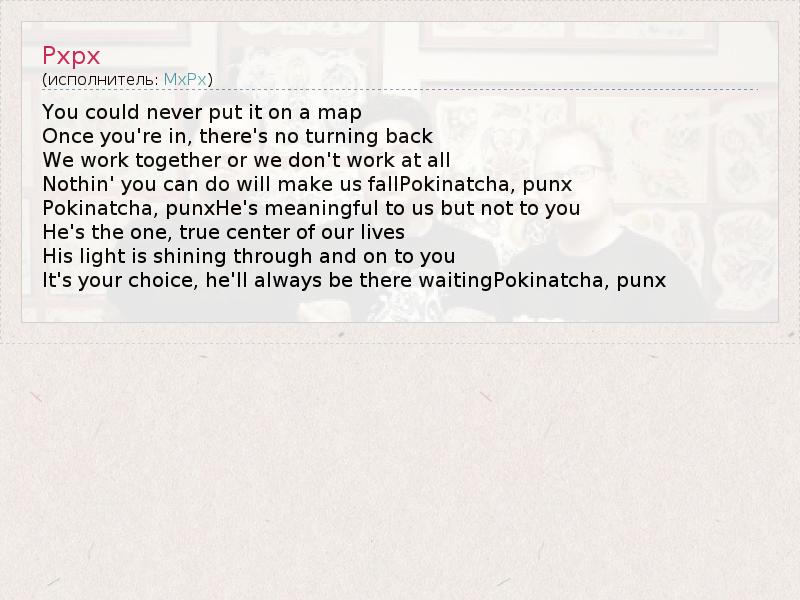 Это интересно:MxPx - это поп/панк-группа, образованная в 1992 году в американском городке Бремертон (штат Вашингтон).Группа начиналась как собрание 15-летних мальцов, которые называли себя "Magnified Plaid" и играли типичную для поп\панковых-групп южной Калифорнии того времени музычку. Им не очень-то нравилось собственное название (которое, кстати, произошло от надписи на футболке гитариста), и, в итоге,... продолжение