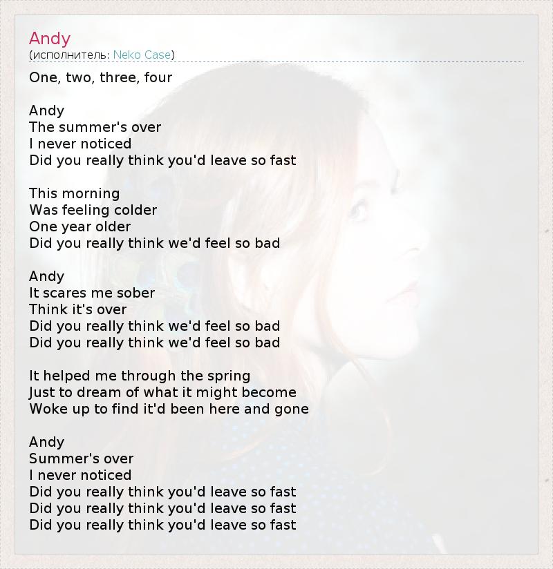 Это интересно:Neko Case (Никоу Кейс, род. 8 сентября 1970 в Александрии, шт.Вирджиния) - американская певица, известная как по своему сольному творчеству, так и в качестве участницы группы The New Pornographers. Какое-то время выступала и записывалась под псевдонимом Neko Case & Her Boyfriends.Она покинула родителей в возрасте 15 лет, и спустя три года уже записывала партию ударных для нескольких панк-групп. В 1994 она переехала... продолжение