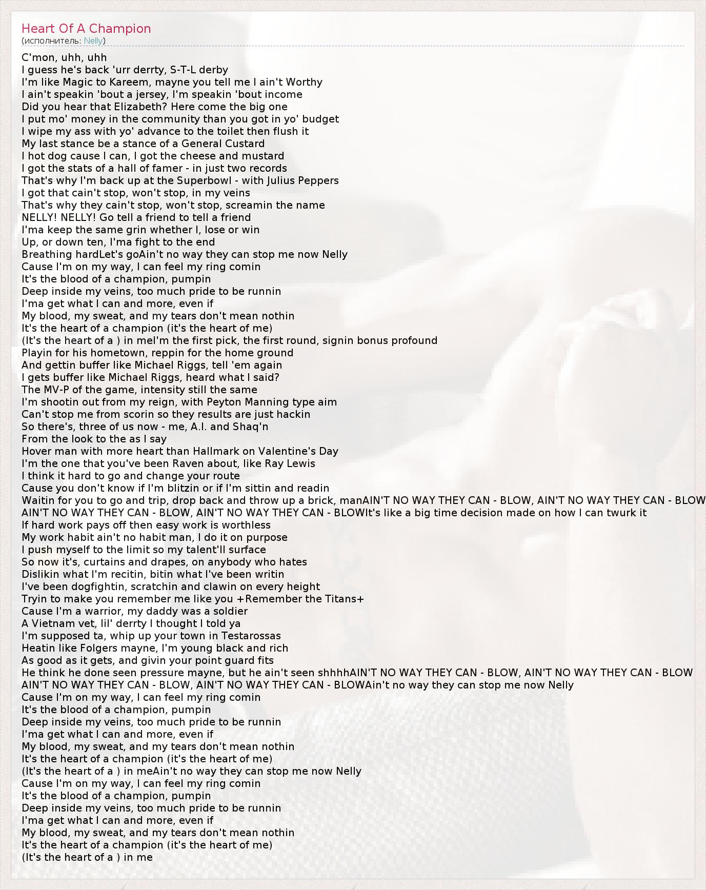 ГлавнаяИсполнителиNellyHeart Of A Champion