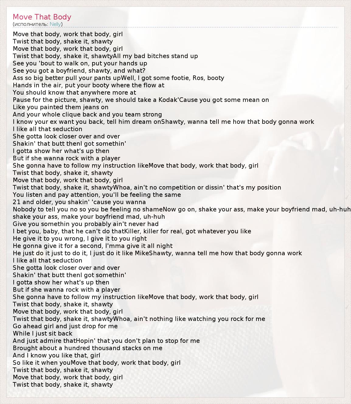 She gonna have to follow my instruction likeMove that body, work that body, girl