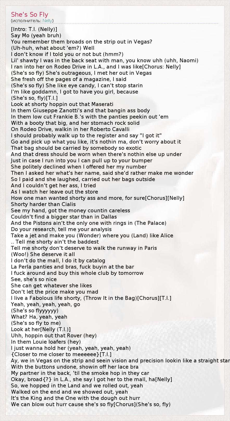 А как ты думаешь, о чем песня "She’s So Fly" ?
