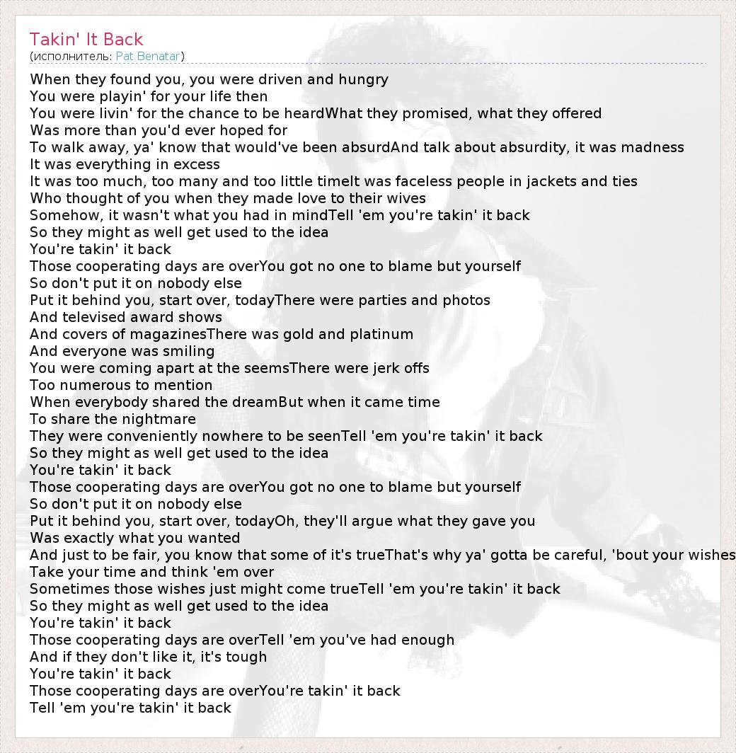 А как ты думаешь, о чем песня "Takin' It Back" ?