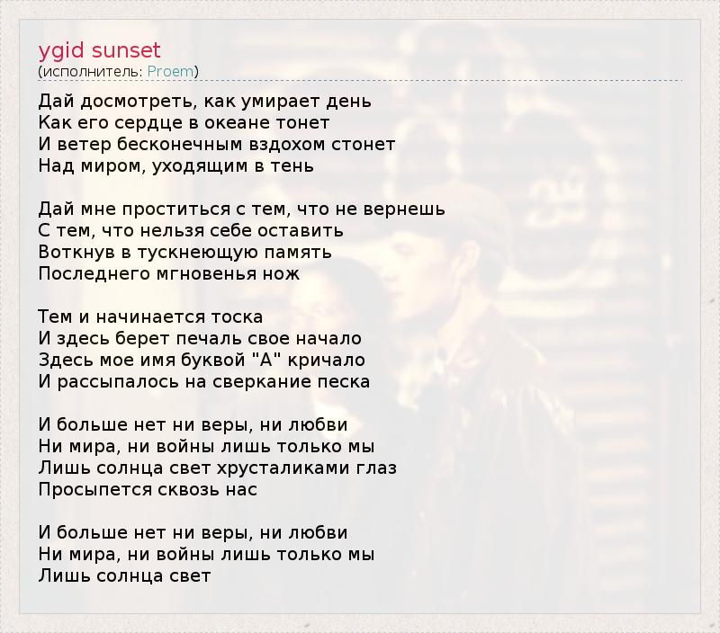 А как ты думаешь, о чем песня "ygid sunset" ?