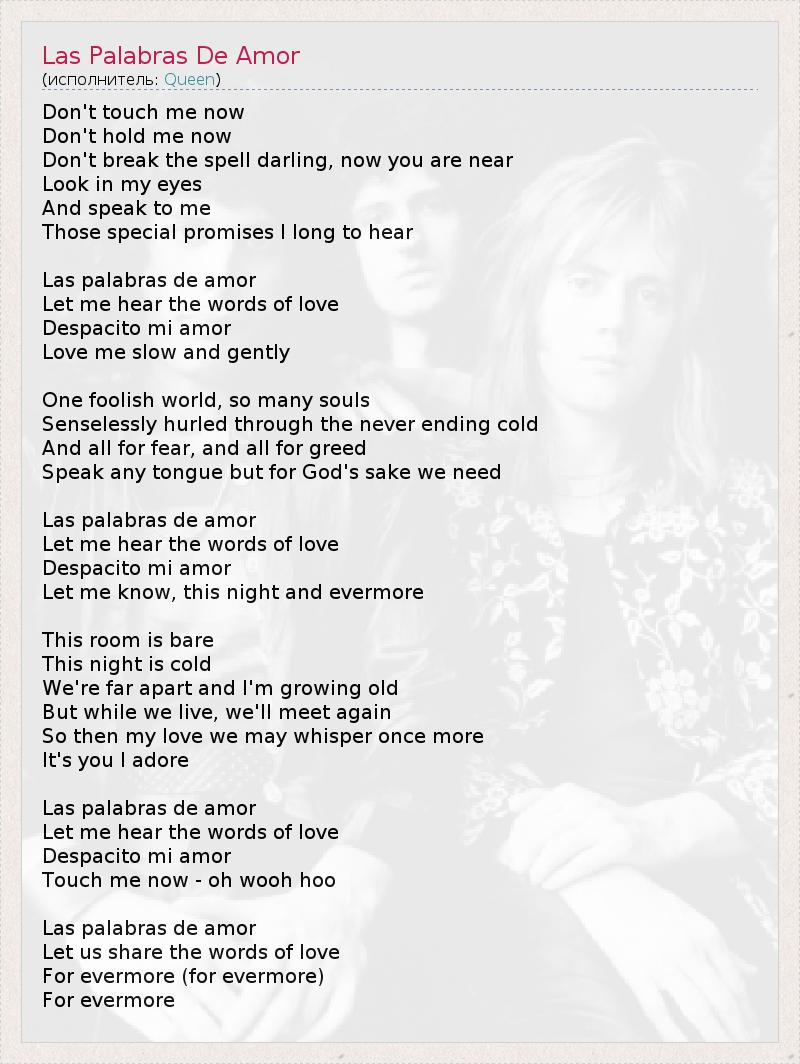 ГлавнаяИсполнителиQueenLas Palabras De Amor
