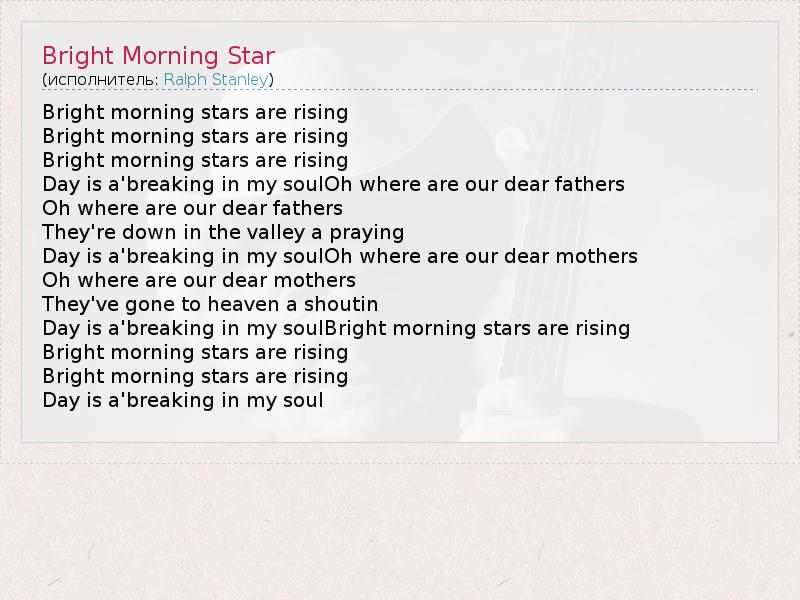 А как ты думаешь, о чем песня "Bright Morning Star" ?