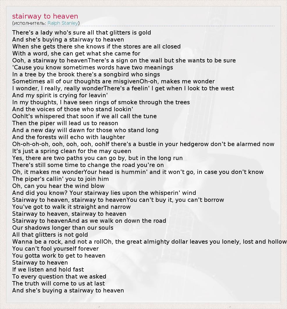 А как ты думаешь, о чем песня "stairway to heaven" ?