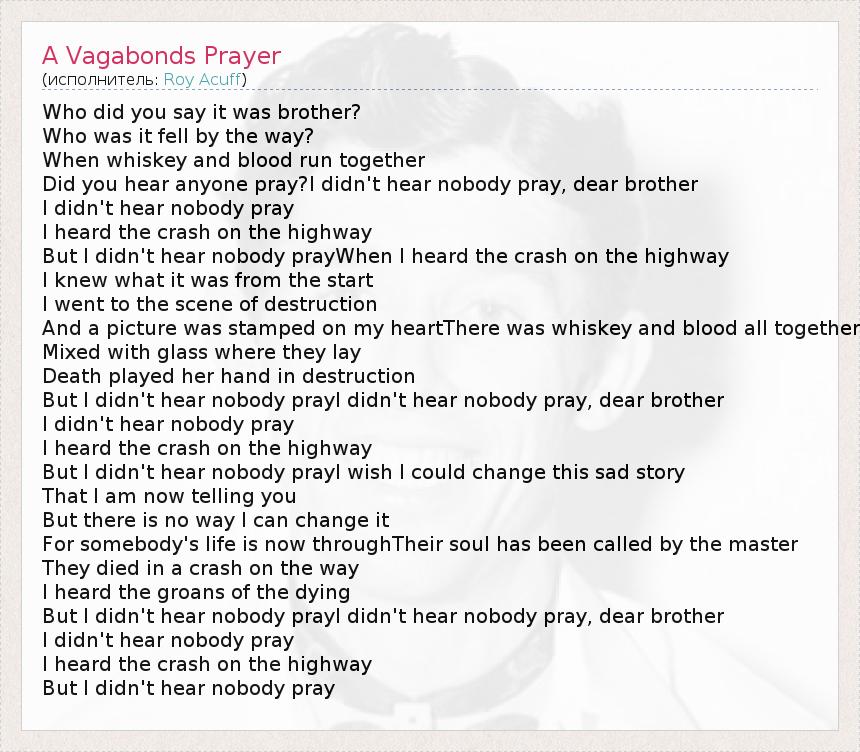 А как ты думаешь, о чем песня "A Vagabonds Prayer" ?