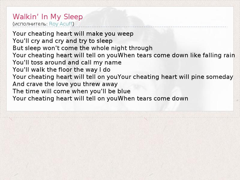 Your cheating heart will tell on youWhen tears come down like falling rain