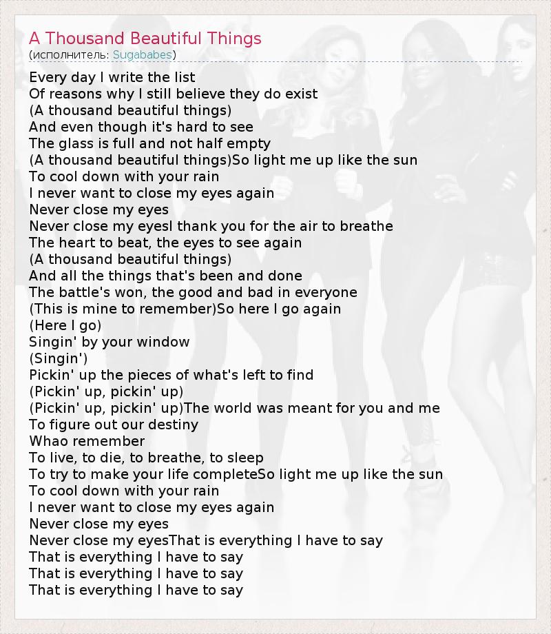 А как ты думаешь, о чем песня "A Thousand Beautiful Things" ?