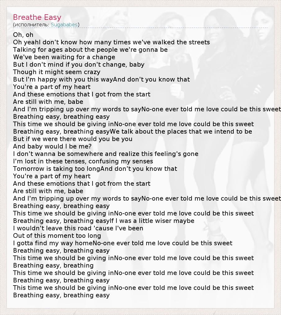 А как ты думаешь, о чем песня "Breathe Easy" ?