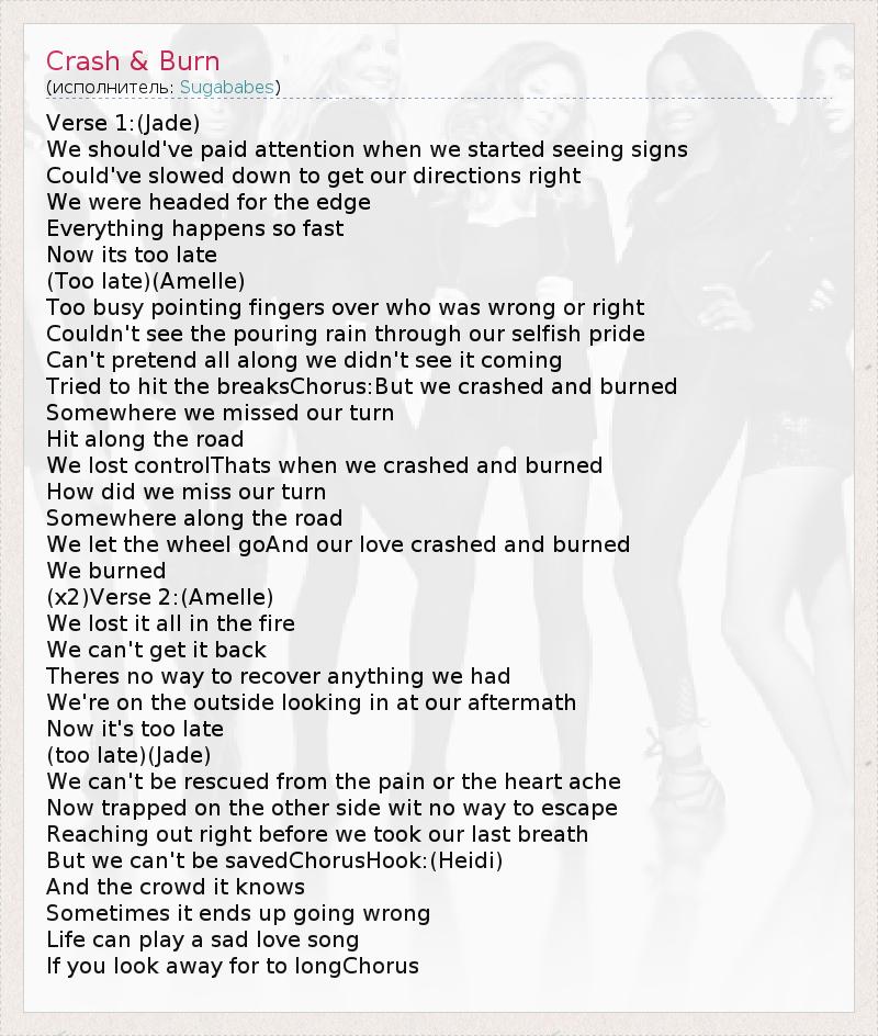 А как ты думаешь, о чем песня "Crash & Burn" ?