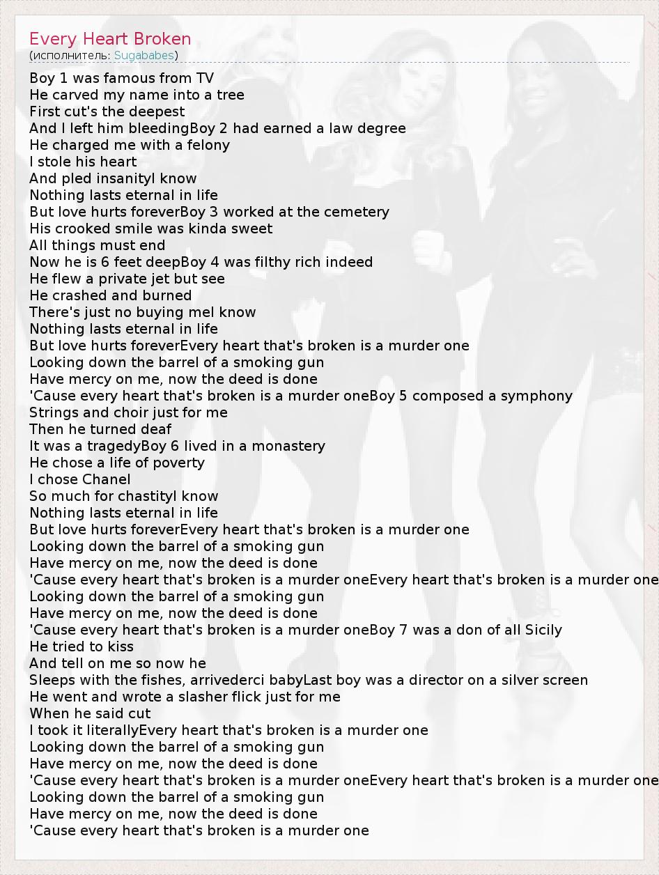А как ты думаешь, о чем песня "Every Heart Broken" ?