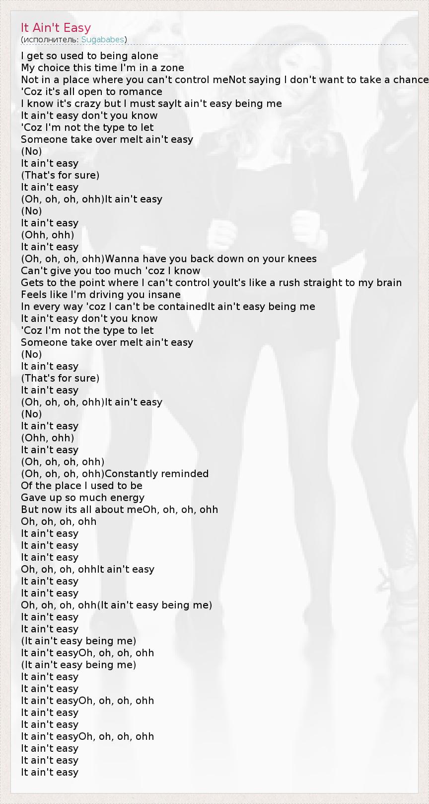 А как ты думаешь, о чем песня "It Ain't Easy" ?