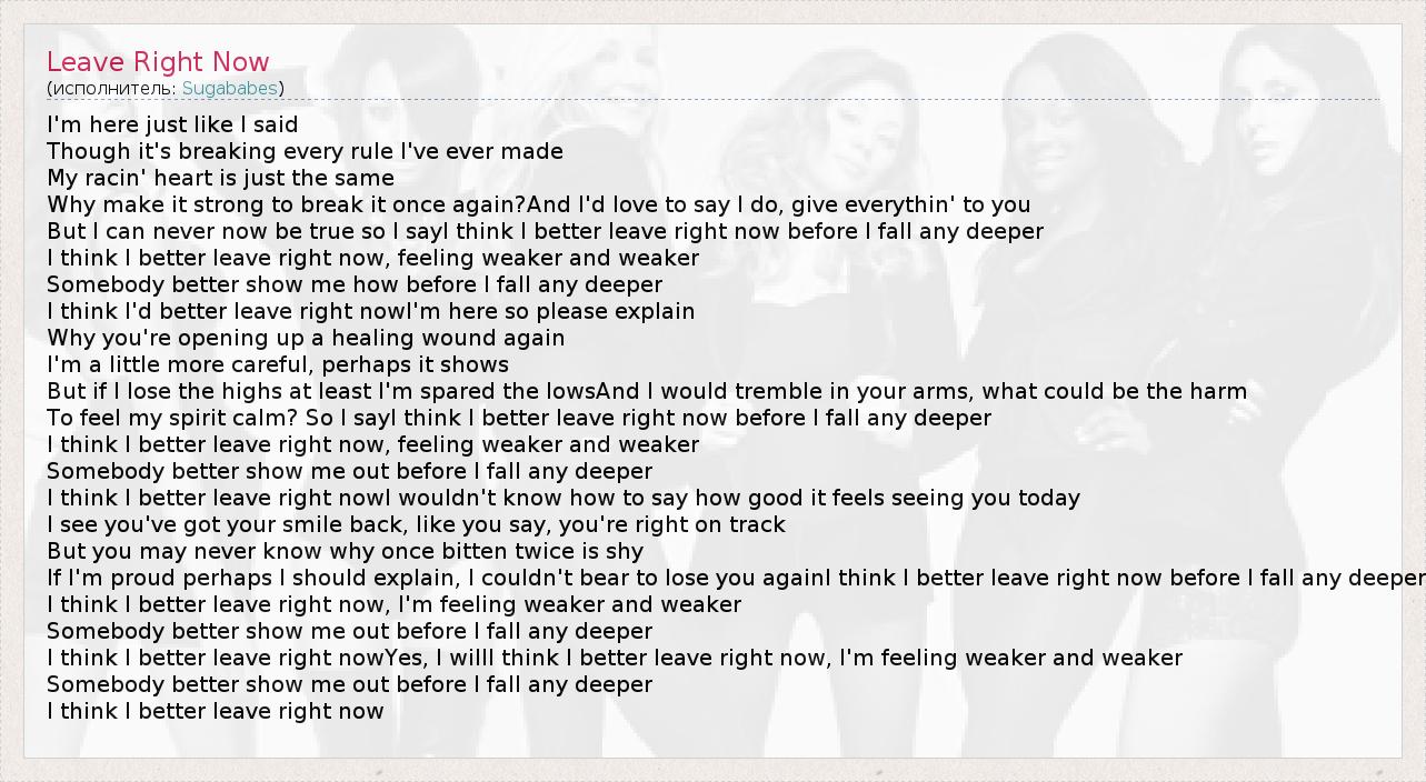 А как ты думаешь, о чем песня "Leave Right Now" ?