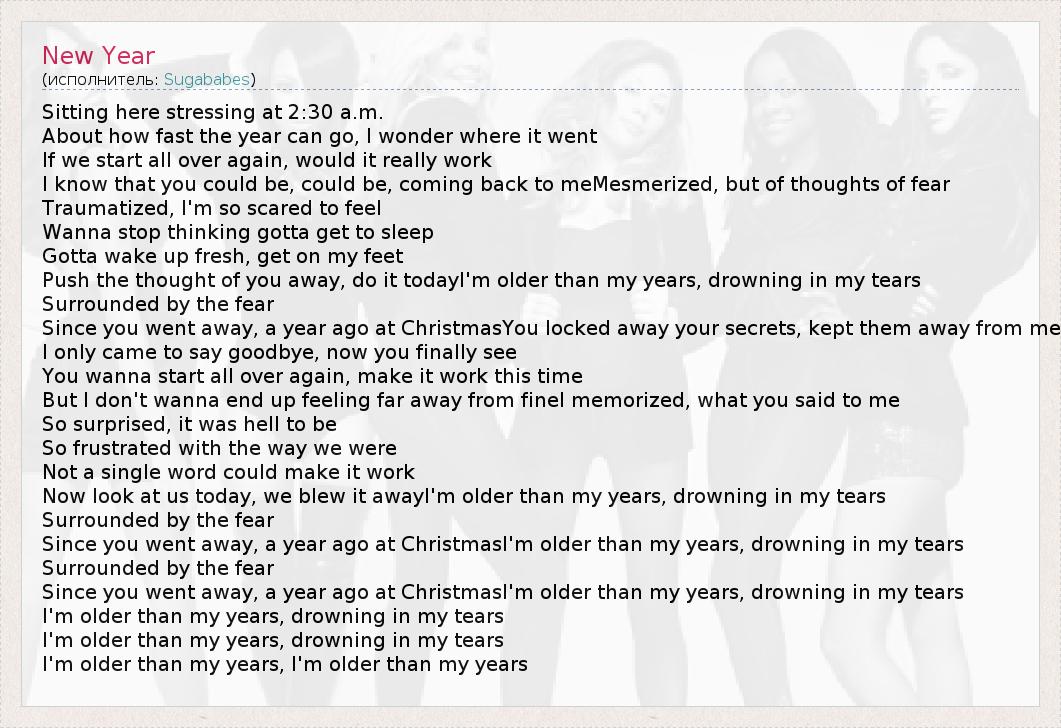 Since you went away, a year ago at ChristmasI'm older than my years, drowning in my tears