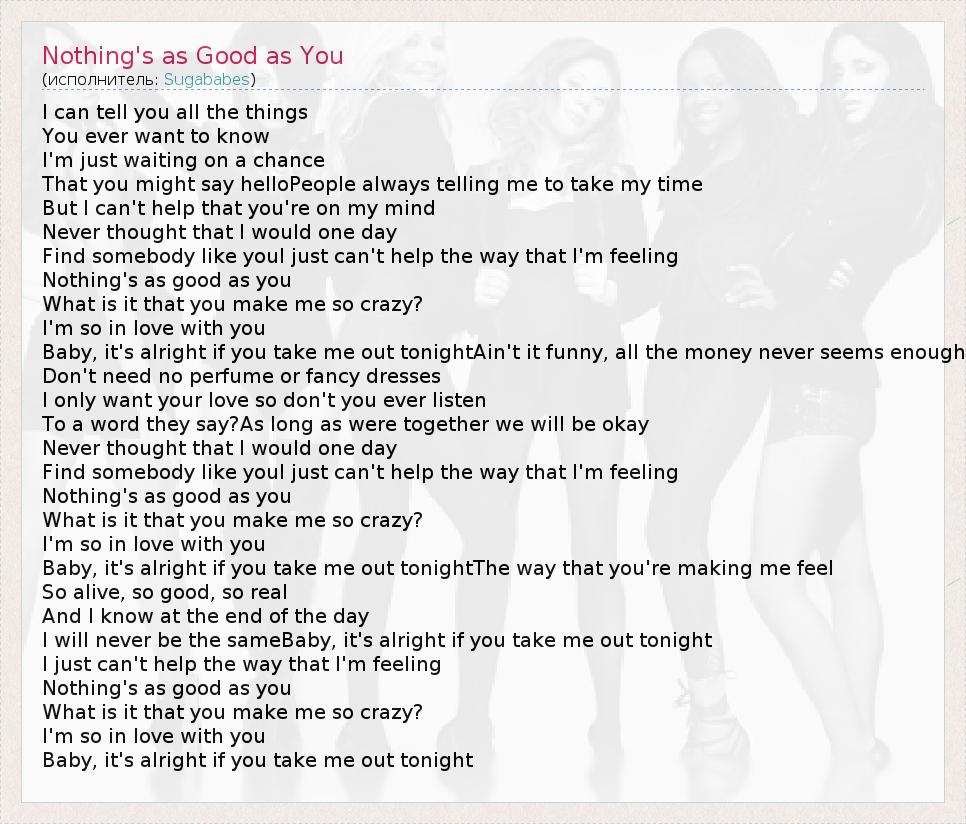 А как ты думаешь, о чем песня "Nothing's as Good as You" ?