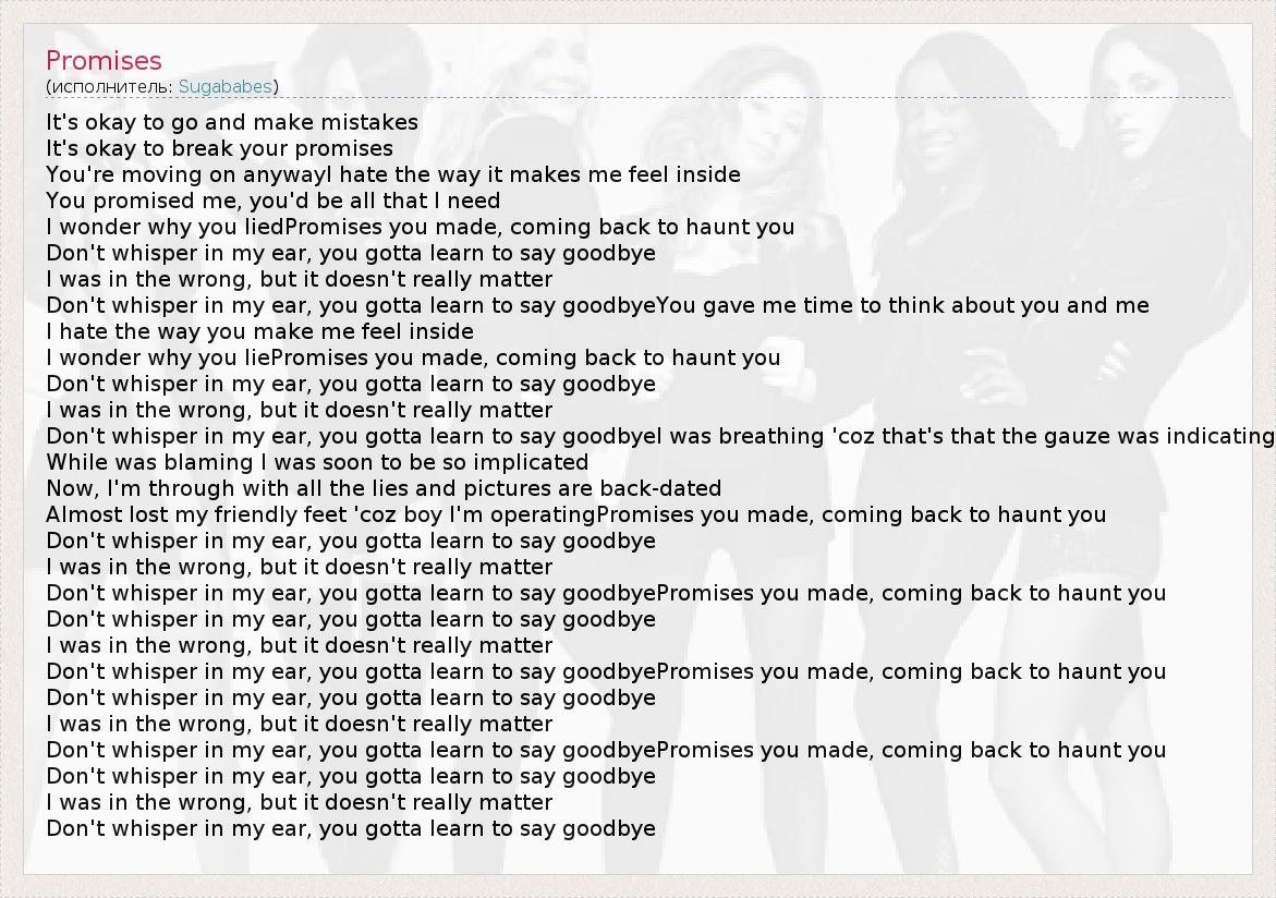 Don't whisper in my ear, you gotta learn to say goodbyePromises you made, coming back to haunt you
