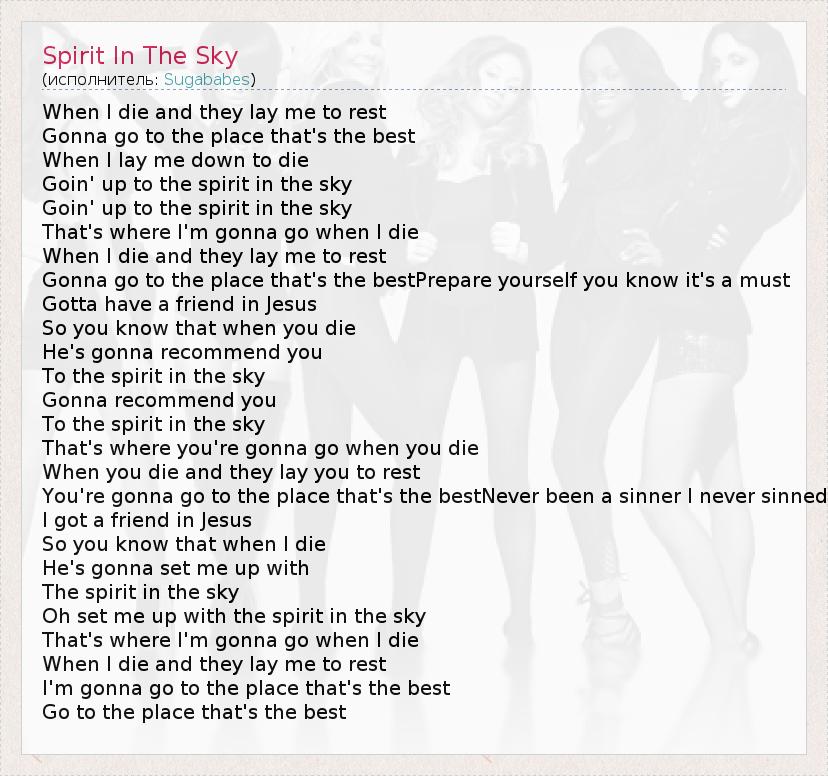 А как ты думаешь, о чем песня "Spirit In The Sky" ?