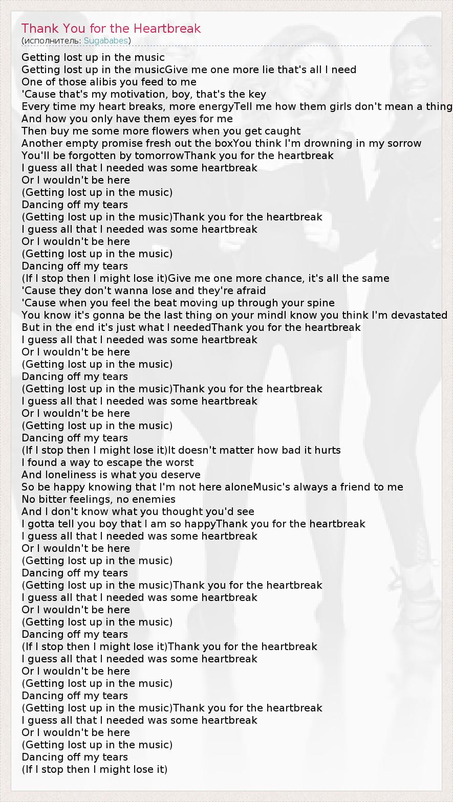 А как ты думаешь, о чем песня "Thank You for the Heartbreak" ?