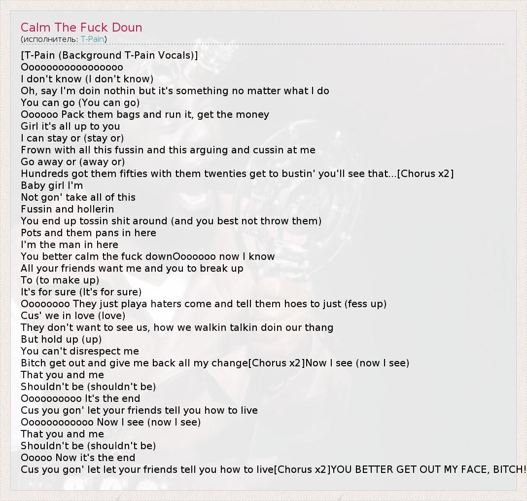 А как ты думаешь, о чем песня "Calm The Fuck Doun" ?