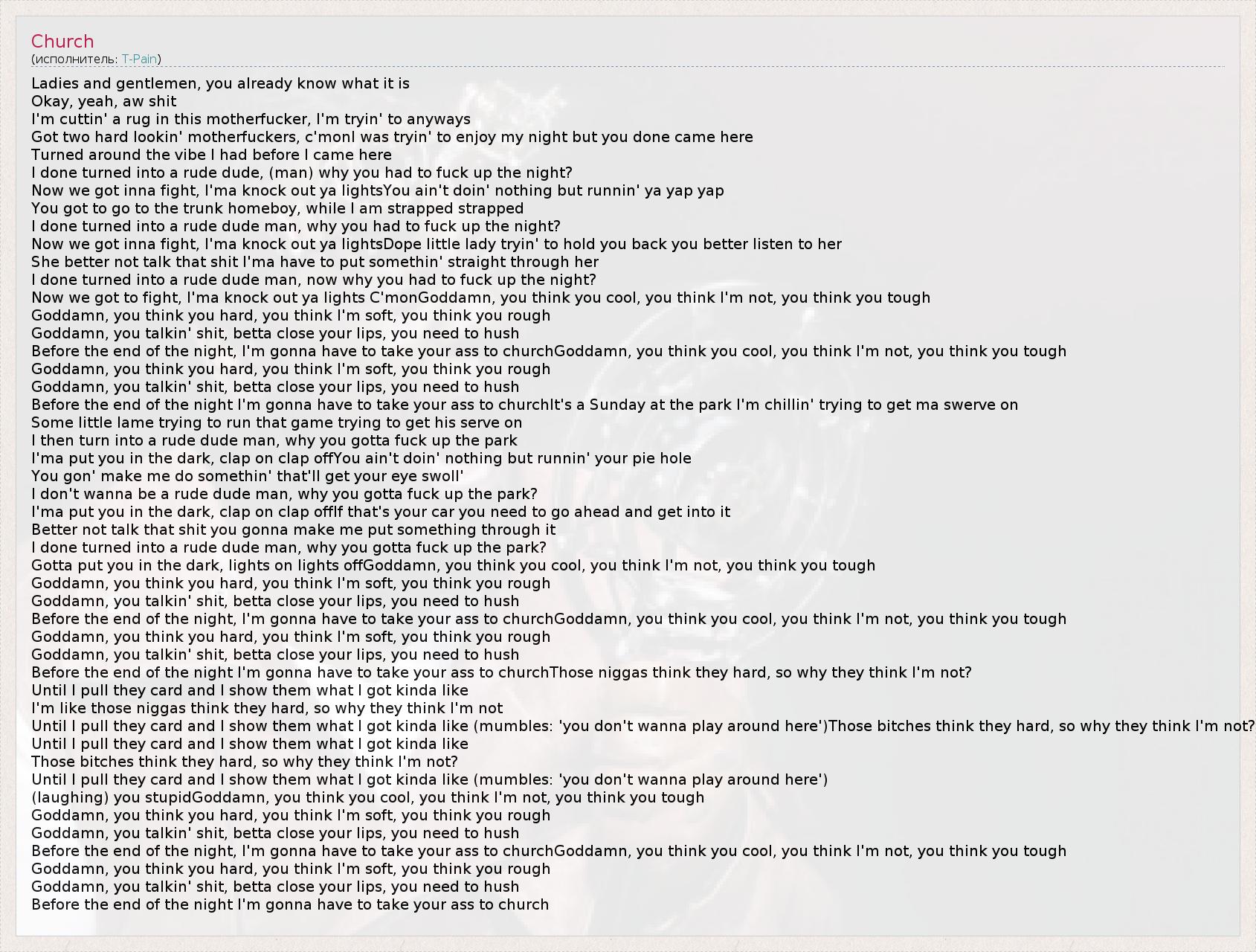 А как ты думаешь, о чем песня "Church" ?